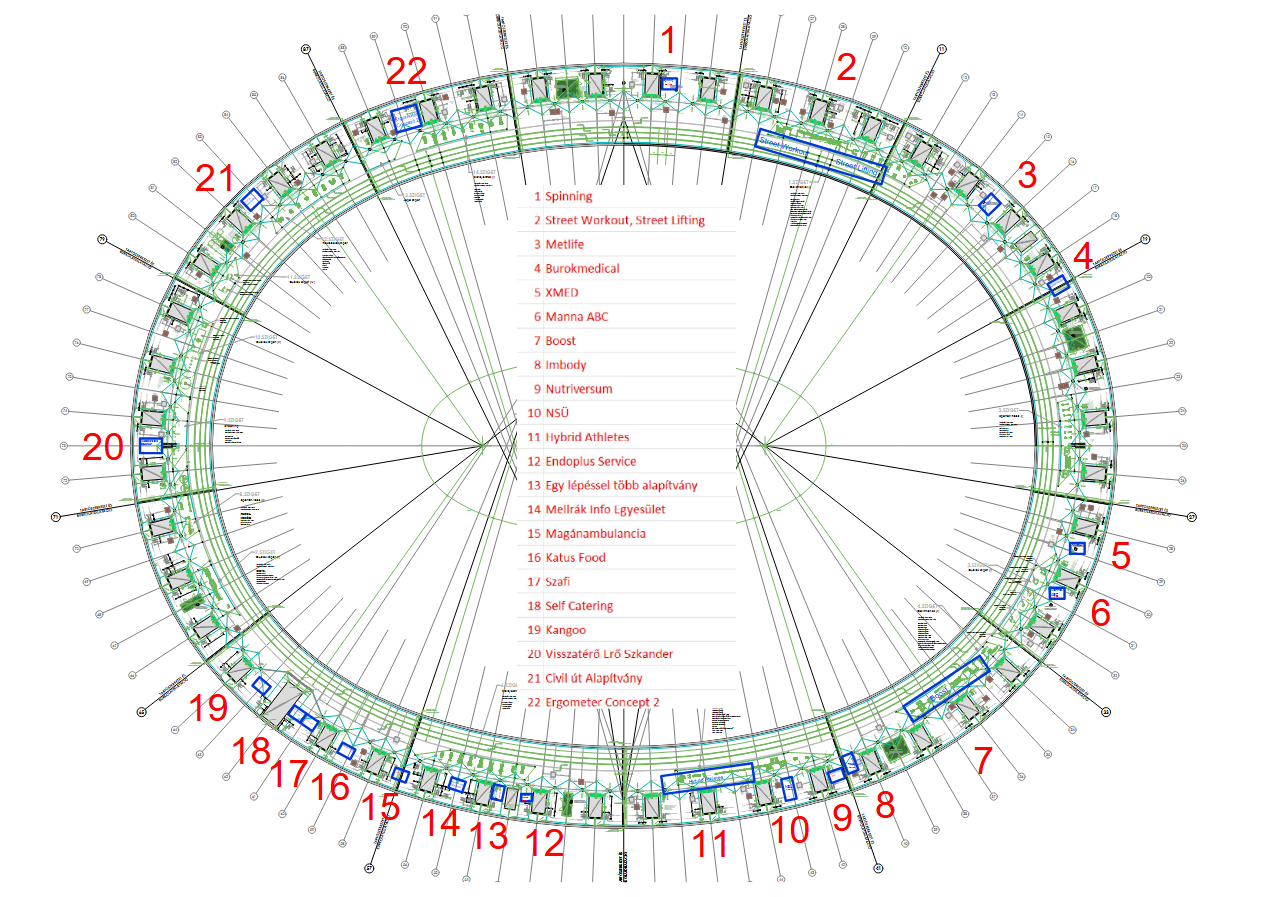A résztvevők egy kijelölt helyen várnak a sorukra a Bestrong állványtól félreeső helyen.